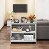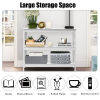 - Designed with open shelves providing additional storage space