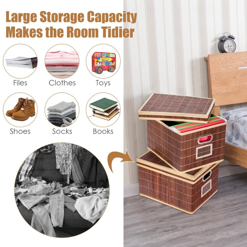 ★ Practical Details ★ This bamboo storage box is equipped with a lid that protects your items from dust. The inner lining made of non-woven fabric protects against scratches and damage. In addition, the label holder allows you to label and categorize the boxes.
