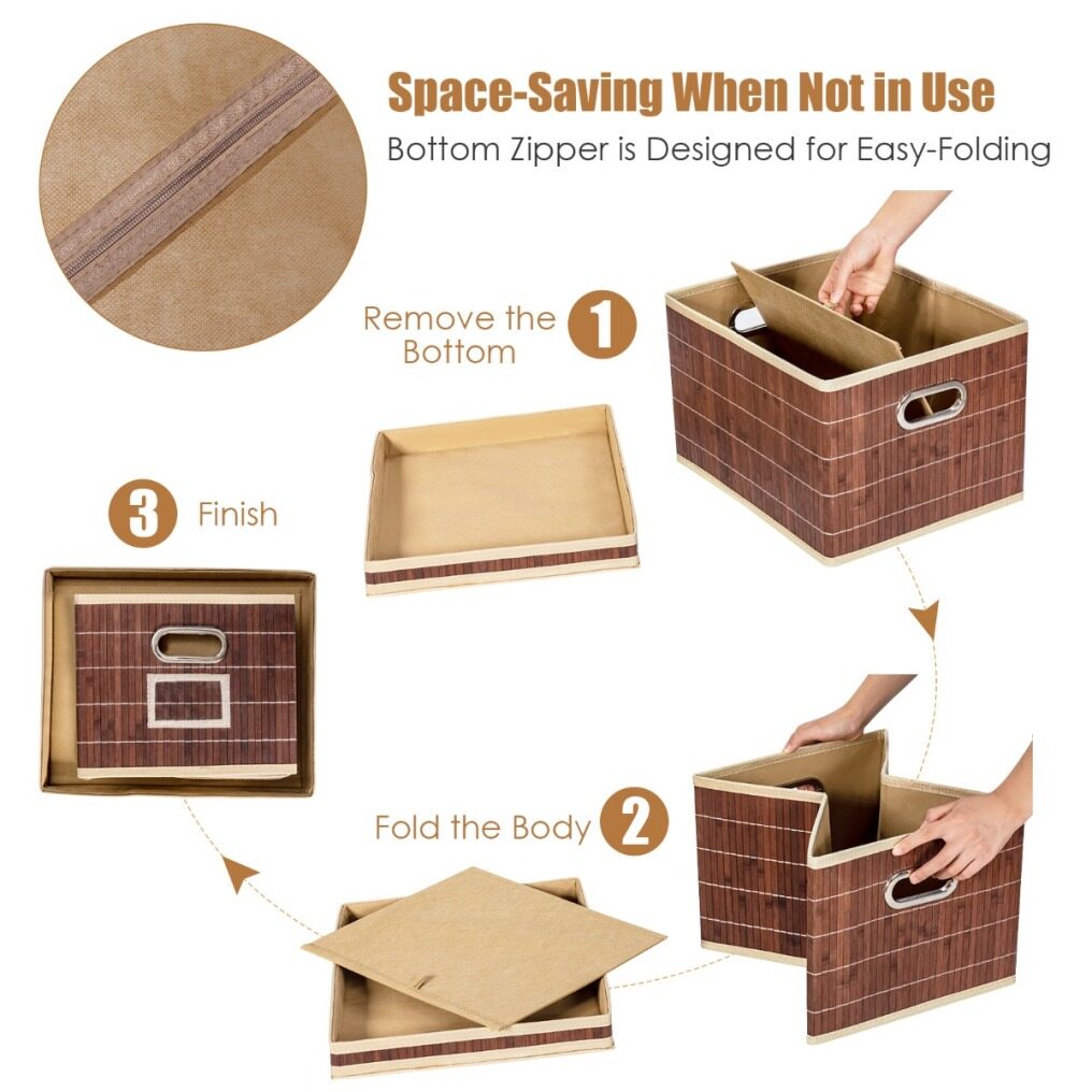 ★ Foldable Design & Easy Carrying ★ With a smooth zip, our bamboo baskets are designed for easy folding. When not in use, you can fold them up and stow them away in a small space. The two metal handles on the side fit very comfortably in the hand, which means that you can effortlessly move the bamboo baskets wherever you need them.