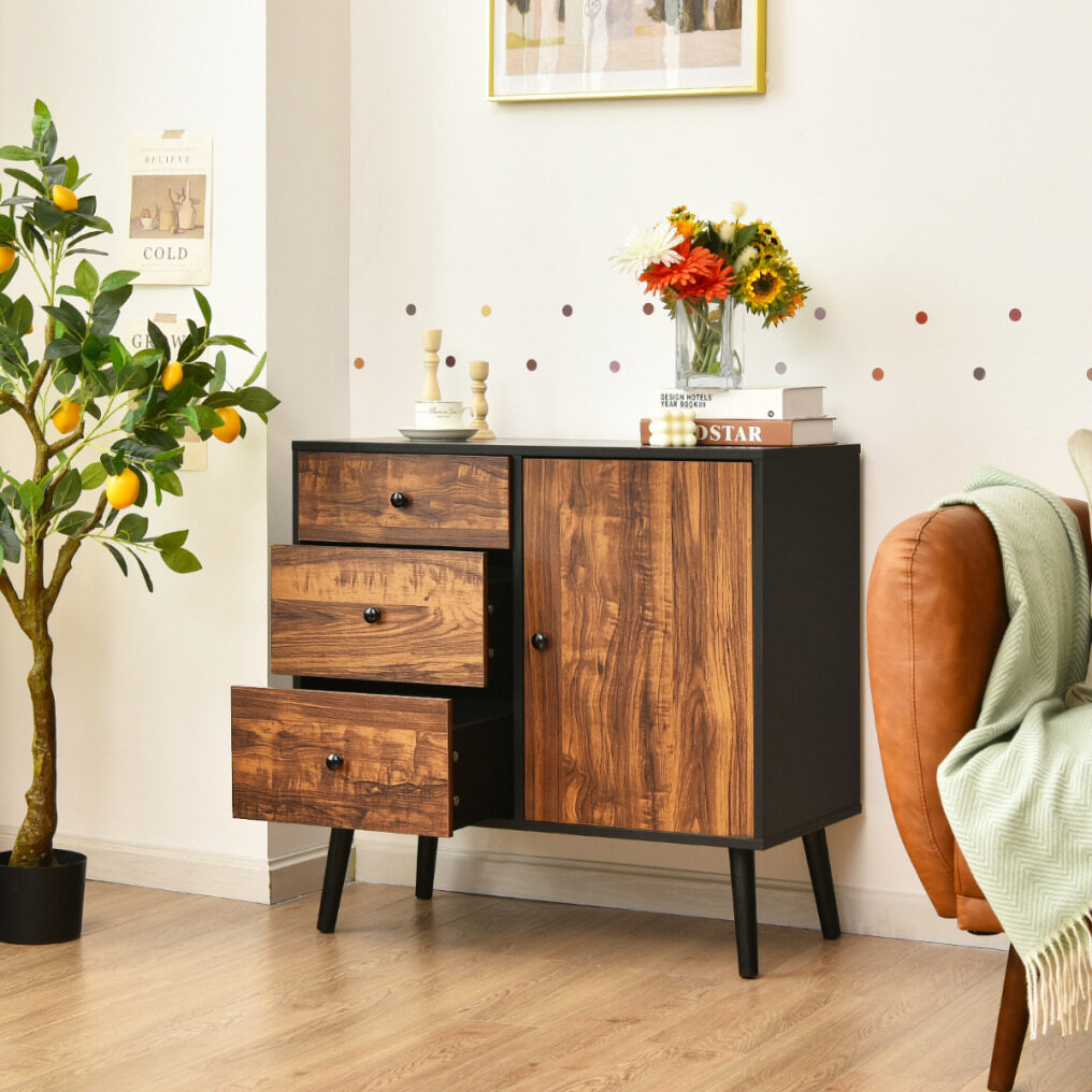 Spacious Storage Space: This freestanding sideboard is equipped with 3 practical drawers and 1 large cabinet which offers ample space for you to store various items, such as clothes, tableware, books, toys and more, keeping your place tidy and clean and making items organized.
