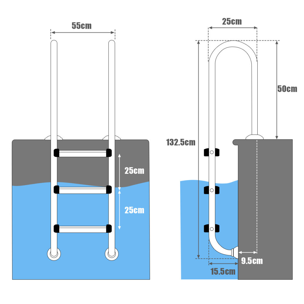 3-Step Safe Access: Equipped with 3 steps, our swimming pool ladder will be perfect for you to get on and get off. Each pedal is equipped with the anti-skid surface to ensure safety under wet and slippery conditions. What’s more, the humanized 25cm step spacing allows you to step on comfortably.