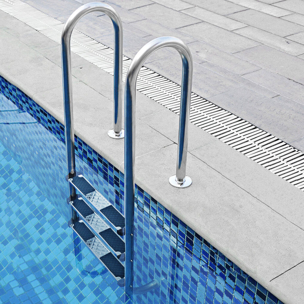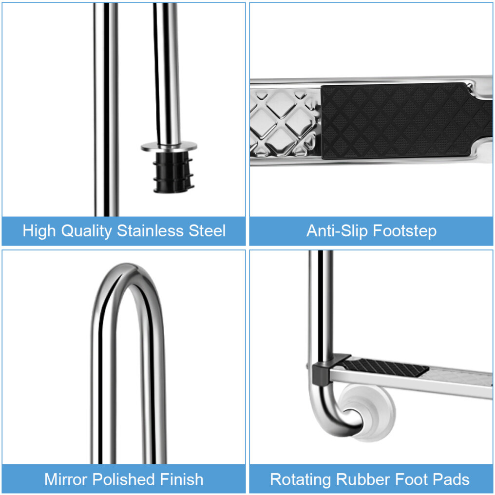 Stainless Steel & Stable Frame: Our pool ladder is made of stainless steel, which makes it sturdy and durable enough for long-time use. It has good resistance to aging, thus ensuring that the water quality will always remain pure and clean.