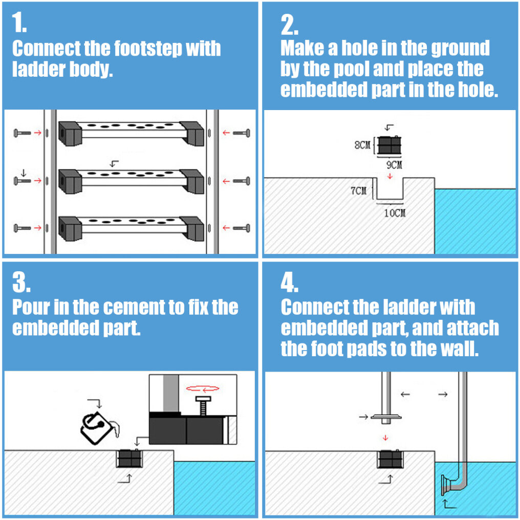 Convenient & Firm Installation: The detailed instructions with clear diagrams make it easier for you to install the pool ladder. And the pre-drilling installation will be more firm than screw installation, providing you with a carefree using environment.