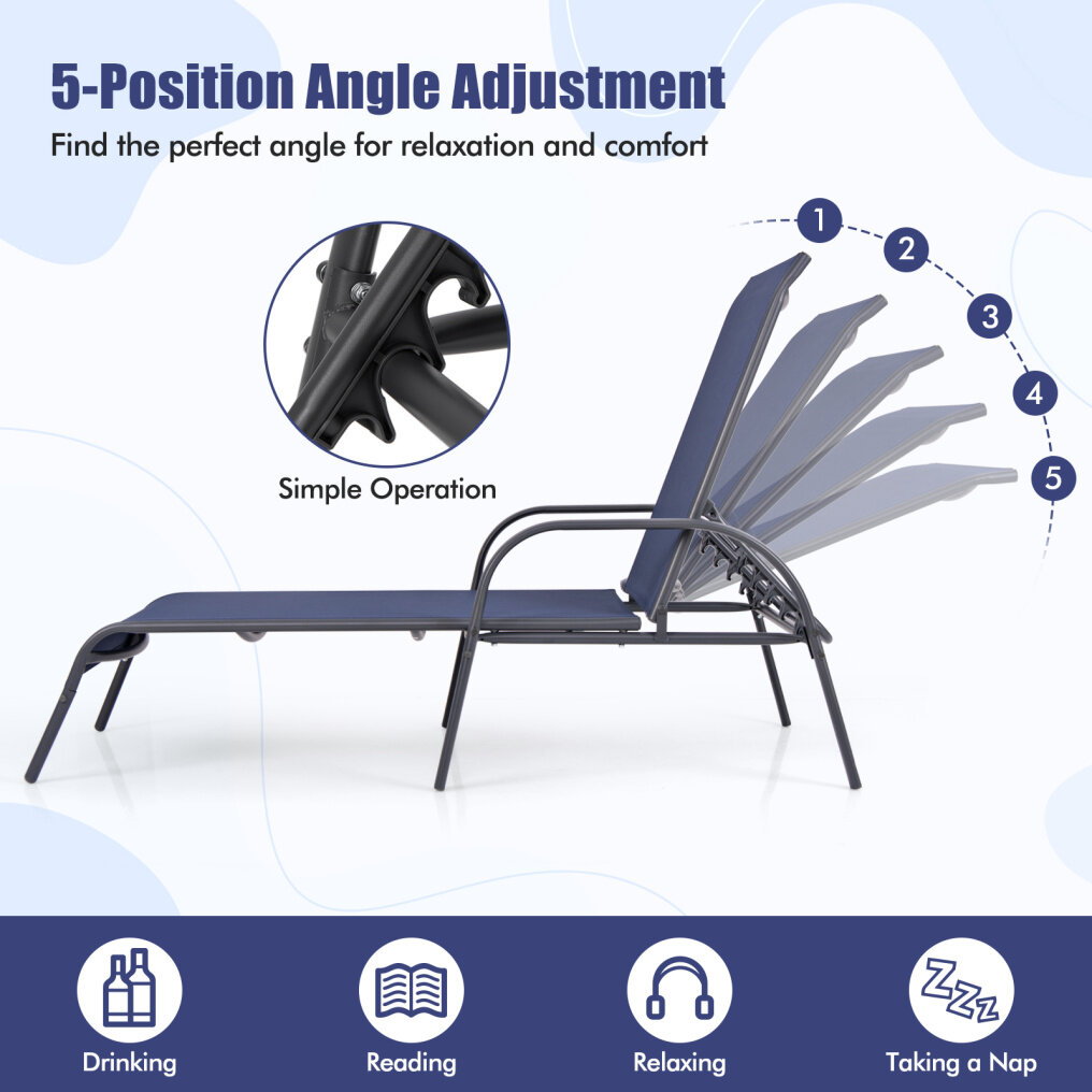 ● Adjustable Chair Back: The patio chaise lounge provides 5 adjustable backrest positions to meet your needs for different reclining angles. Furthermore, the wide backrest and seat make you feel more comfortable.