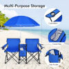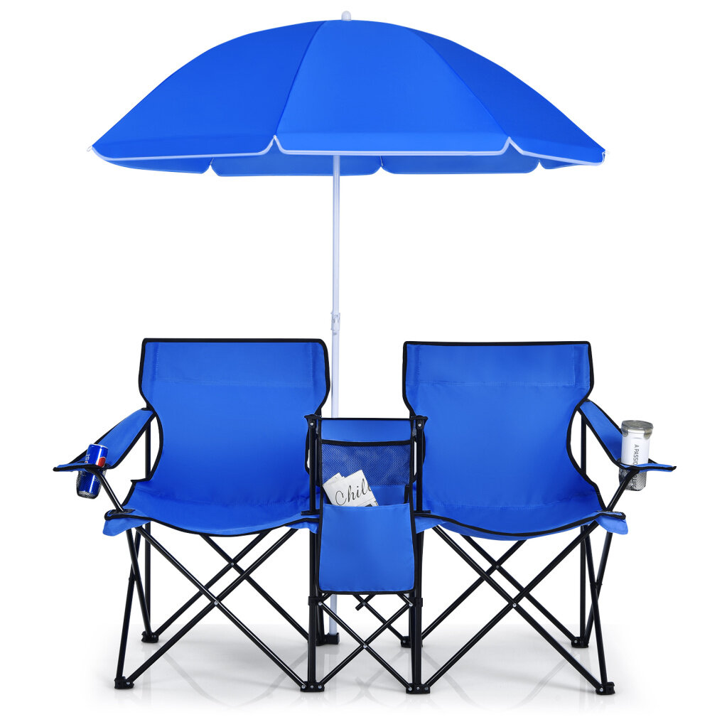 Enjoy a relaxing summer afternoon on outdoor occasions with this double camping chair. The two-seat design allows you to sit with your best friend and have a good talk. The cooler bag, cupholder and side pocket offer plenty of space for storage, making everything you need at easy reach. What’s more, the removable and adjustable umbrella well protects you from heavy sunlight. The sand anchor makes the umbrella stand steadily and the adjusting handle makes it convenient to adjust the height of the umbrella. Furthermore, storage and transportation will be pretty effortless due to the folding design and carrying bag. This double camping chair with an umbrella will be a perfect companion for your outdoor activities.