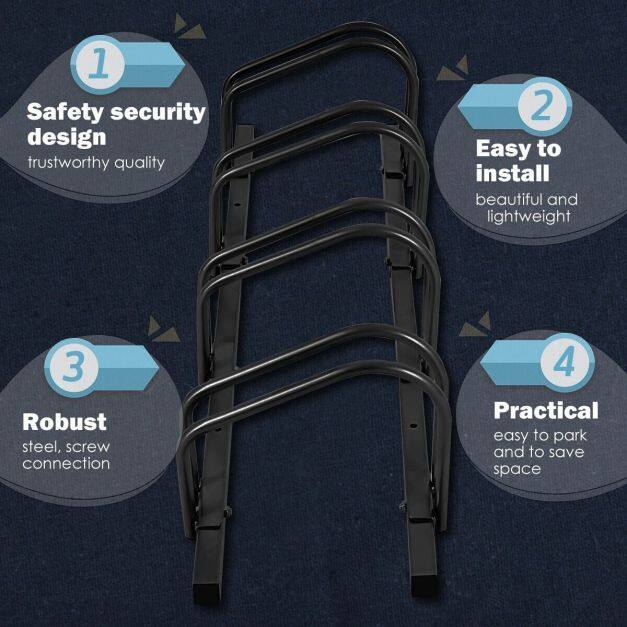 Wide Application: Each bike rack has several spacious positions for bike storage. You can park diverse types of bicycles in the rack, such as children's bikes, mountain bikes and stunt bikes. Plus, with a minimalist style that makes the rack blend well into various environment, you can place it in garden, garage and corridor.