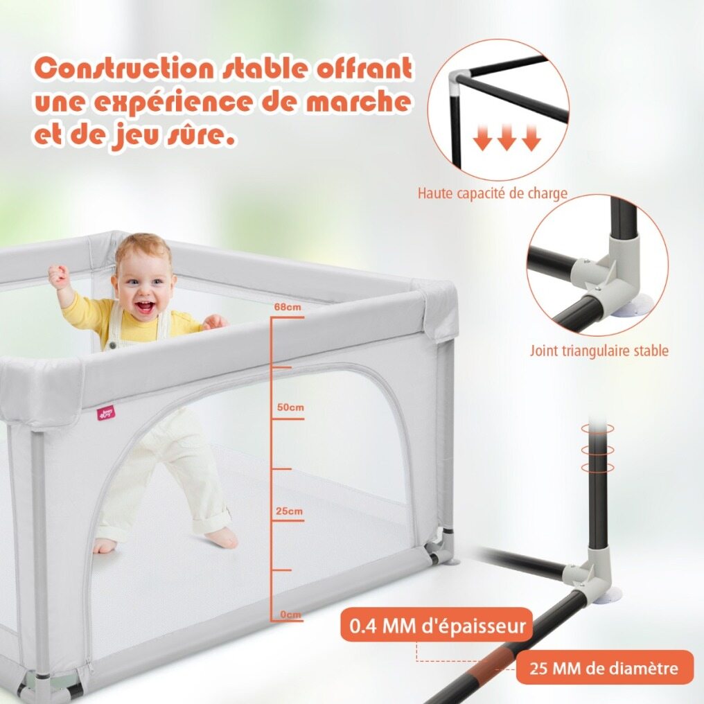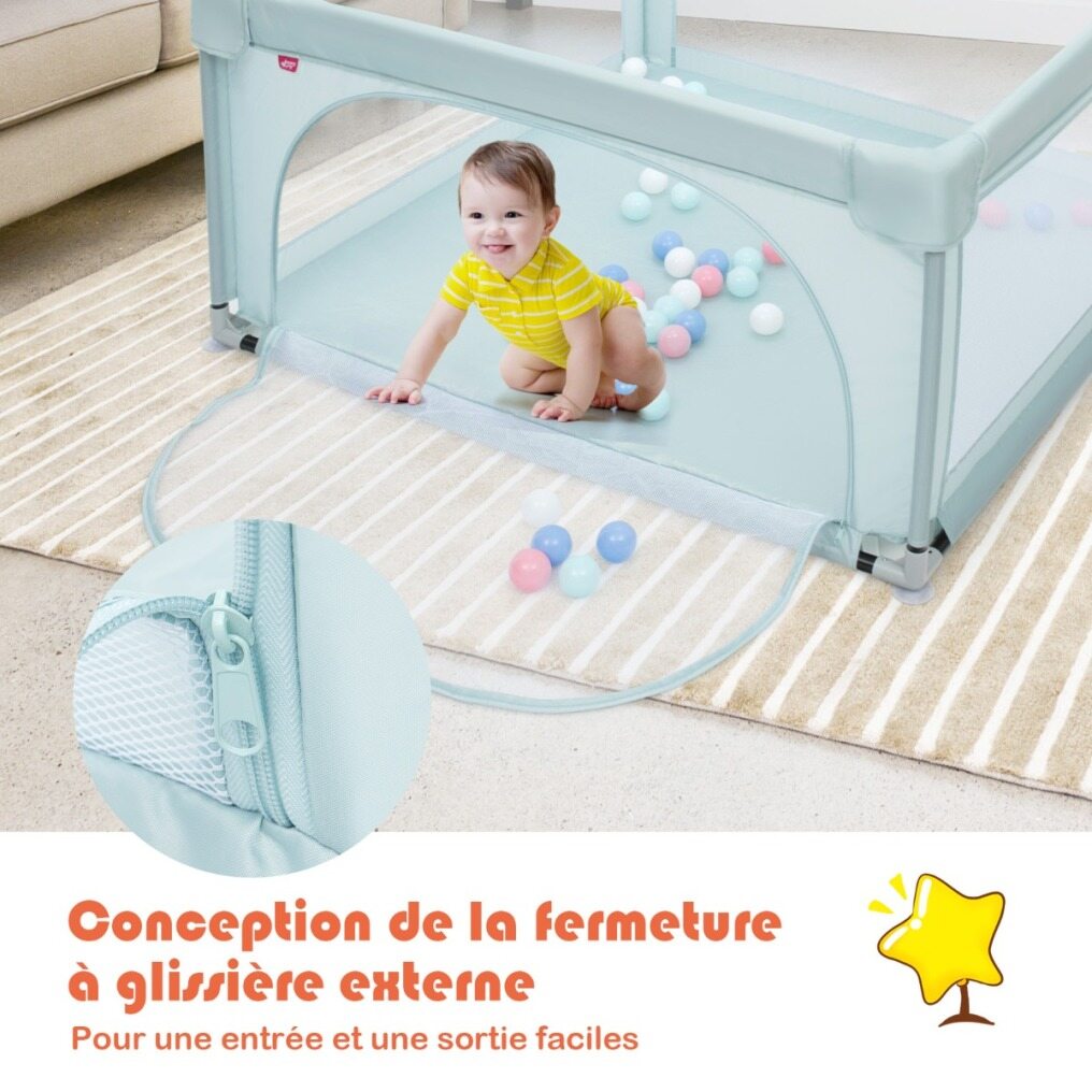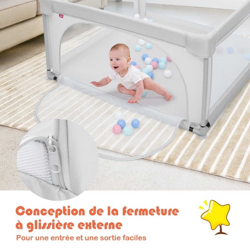 Breathable Mesh Panels with the Zipper: The breathable mesh side panels allow parents to attentively observe the baby's actions and interact with him/her at any time to give your baby a sense of security. The considerate external zipper opening design effectively prevents babies from running outside and falling accidentally.
