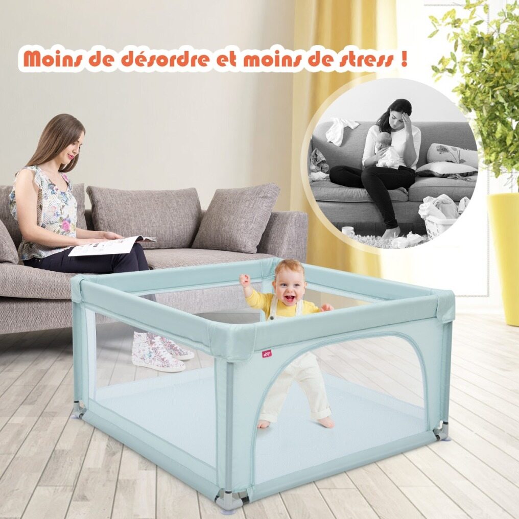 A premium baby playpen is a great option! The playpen for toddlers has been carefully designed to provide a safe play area for your child. Made of a durable steel frame, covered with oxford cloth, and padded with a thick sponge, the toddler playpen is wear-resistant, tear-resistant, and safe for anti-collision, kid-friendly material to climb, touch, or even bite. In addition, the stable structure with stable suckers prevents tipping and accidental movement; the visible side panels with zippered doors allow children to see their mothers from different sides, whether they are sitting or lying down. This will make them feel safe and you can interact with them anytime. A baby playpen is a practical tool and helper for parents who need more free time and babies who need a lot of space to play! If you are looking for a product like this, do not hesitate to place an order!
