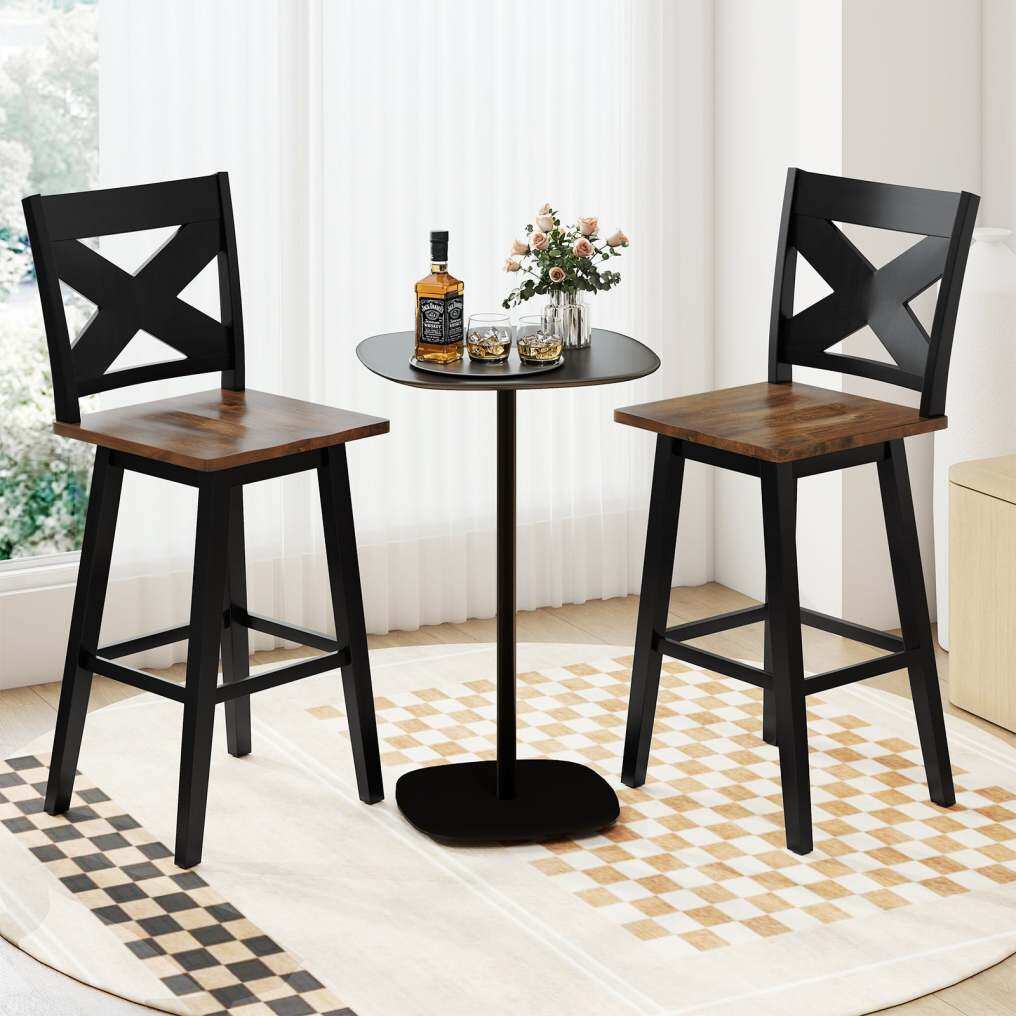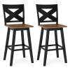 29" Rubberwood Swivel Barstools Set of 2 with Backrest and Large Seat-Black