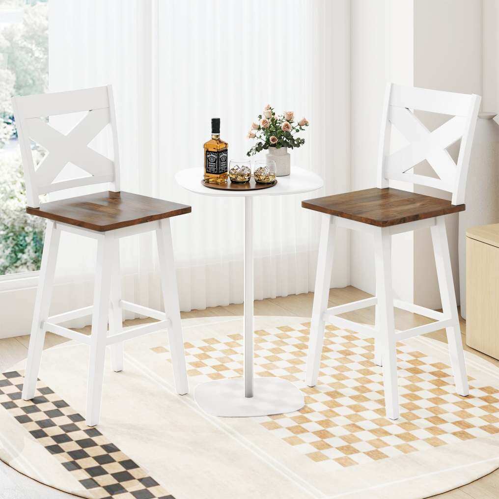 29" Rubberwood Swivel Barstools Set of 2 with Backrest and Large Seat-White
