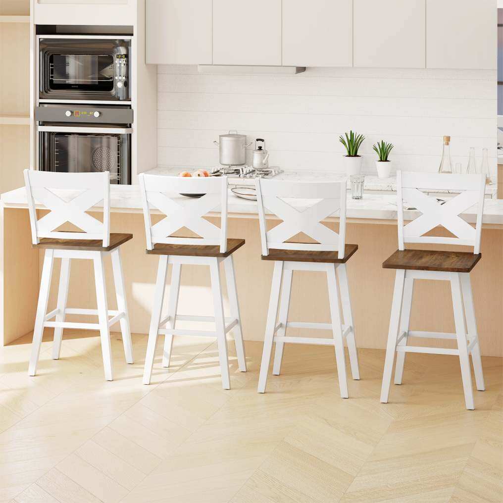 ● Warm & Inviting Look: These swivel barstools perfectly blend farmhouse charm with modern design. The appealing look makes them ideal for kitchen islands, dining rooms, or pubs seeking a cozy yet stylish atmosphere.