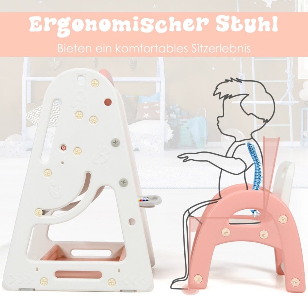 - Adjustable Height: Adjustable in 3 pre-set heights from 70cm to 100cm the easel grows with your child. Suitable for children aged 3 years and over. The easel/ desk comes with a matching ergonomic chair offering a seat suitable for either side.