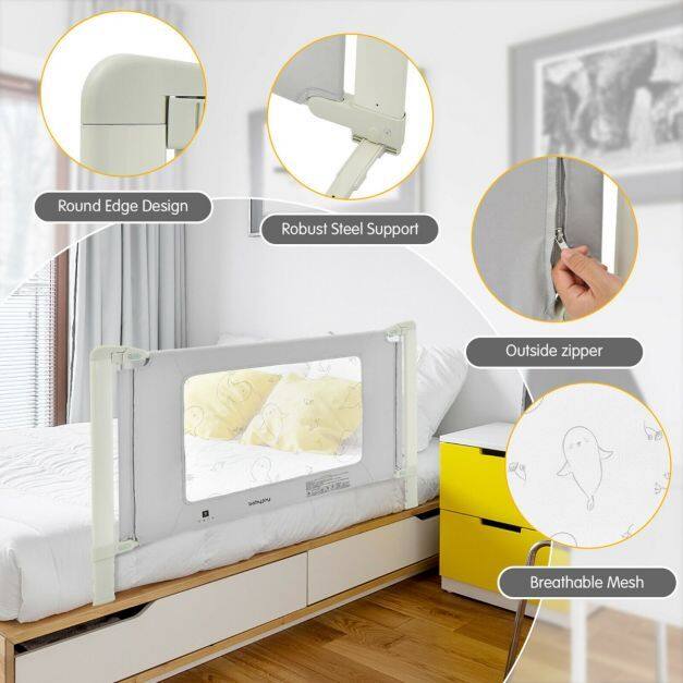 Safe Guard for Baby: Featuring an exclusive seamless design, this toddler bed rail not only avoids falling out of bed when your baby turns over but also allows you to have a sweet dream without worrying about your little one all night. In addition, the double safety lock prevents your baby from accidentally opening.