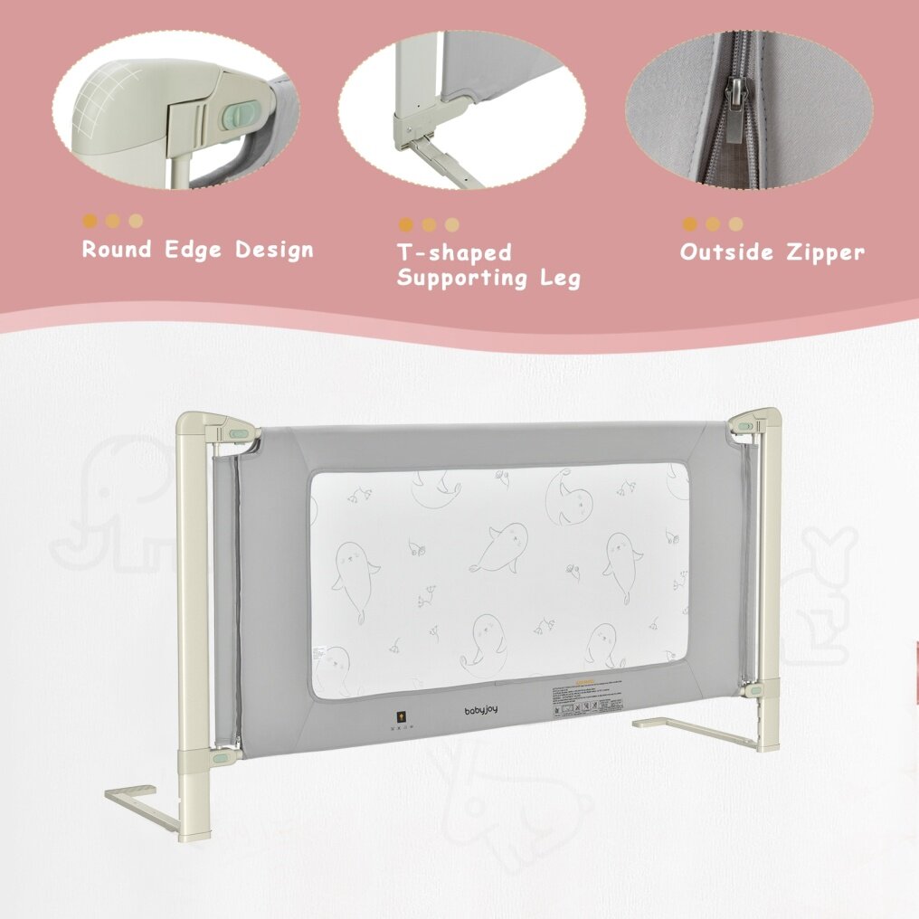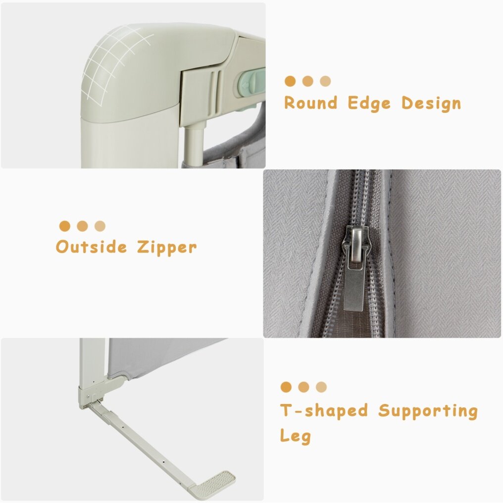 Safe Guard for Baby: Featuring an exclusive seamless design, this toddler bed rail not only avoids falling out of bed when your baby turns over but also allows you to have a sweet dream without worrying about your little one all night. In addition, the double safety lock prevents your baby from accidentally opening.