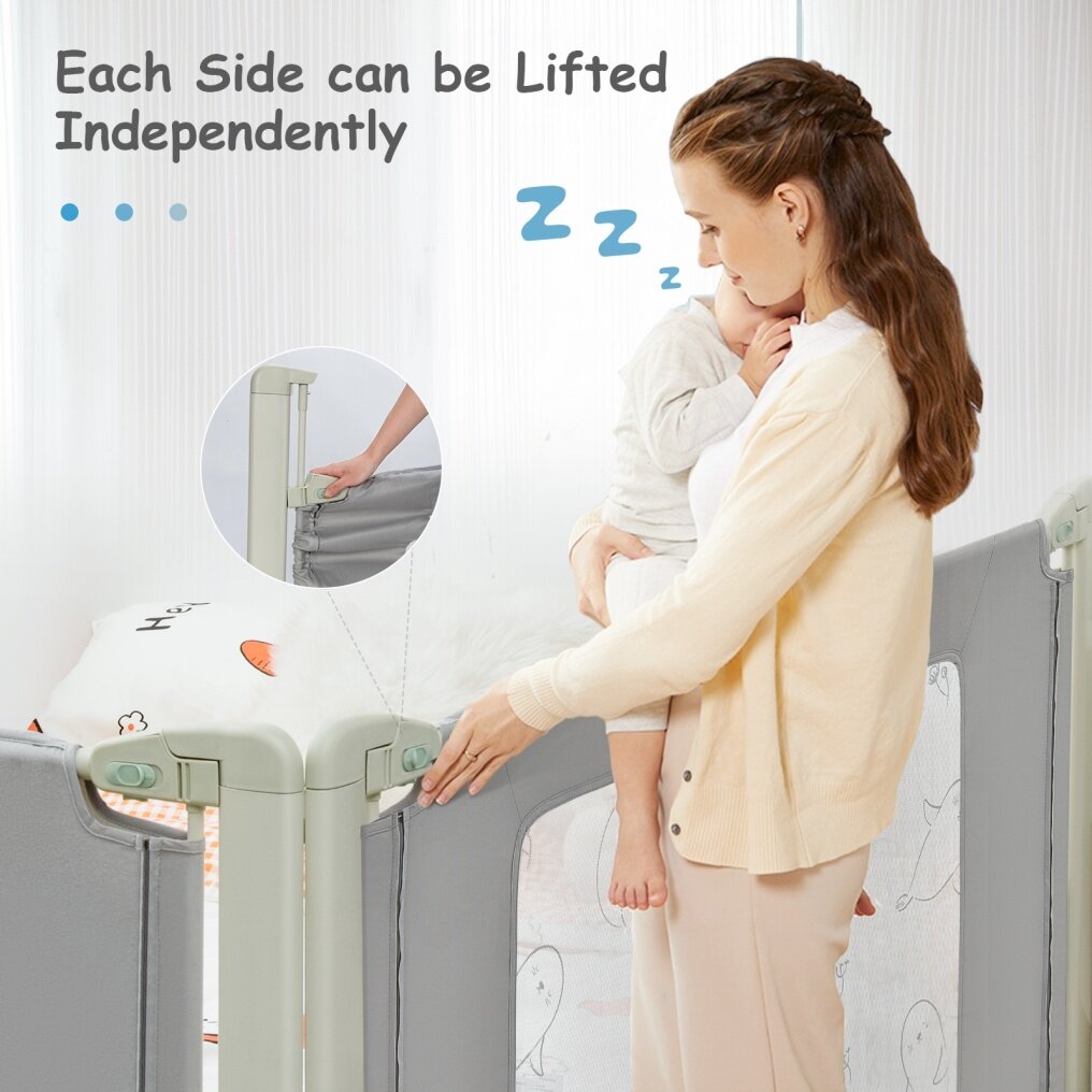 Adjustable Height: Different from other common bed guards, the height of the base can be adjusted from 0 to 15cm to increase the adaptability and installation of different types of mattresses. And each side of our bedside guardrail can be lifted independently which is convenient for parents to operate with one hand.