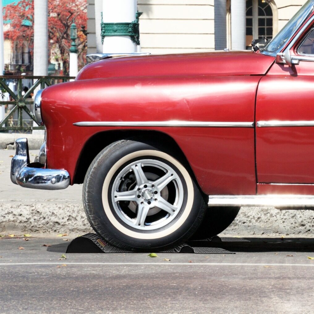 Universal Fit : Our parking stopper is designed to be used on a variety of vehicles, whether it is a golf cart, sedan, RV or pickup truck. Once installed, this tire holder can be a versatile solution for any parking situation, such as in a garage, parking lot or auto repair shop.