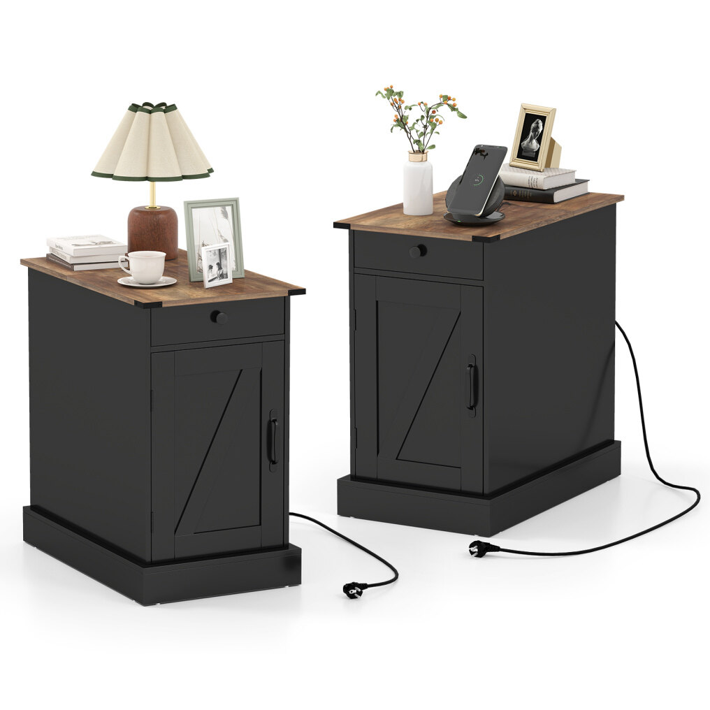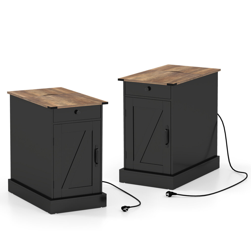 Functional charging station: The integrated charging station with two power outlets, one USB port, and one Type-C port allows for the simultaneous charging of a smartphone, lamp, and other devices. The bedside table's fold-down tabletop offers hidden storage space and keeps cables tidy and out of sight.