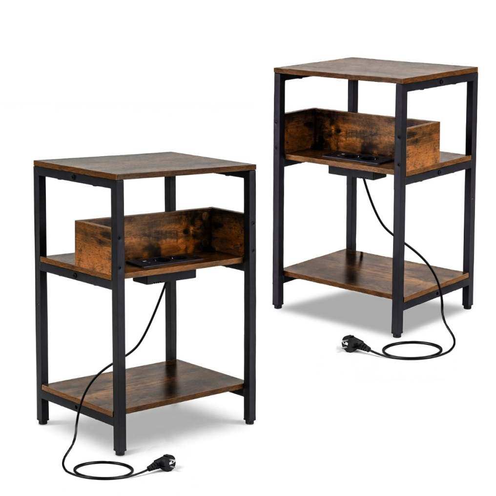 Industrial charm: This bedside table with its rustic brown wood finish adds a cool industrial touch to any room. Its versatile design fits perfectly in the living room, bedroom, or office, combining style with functionality.