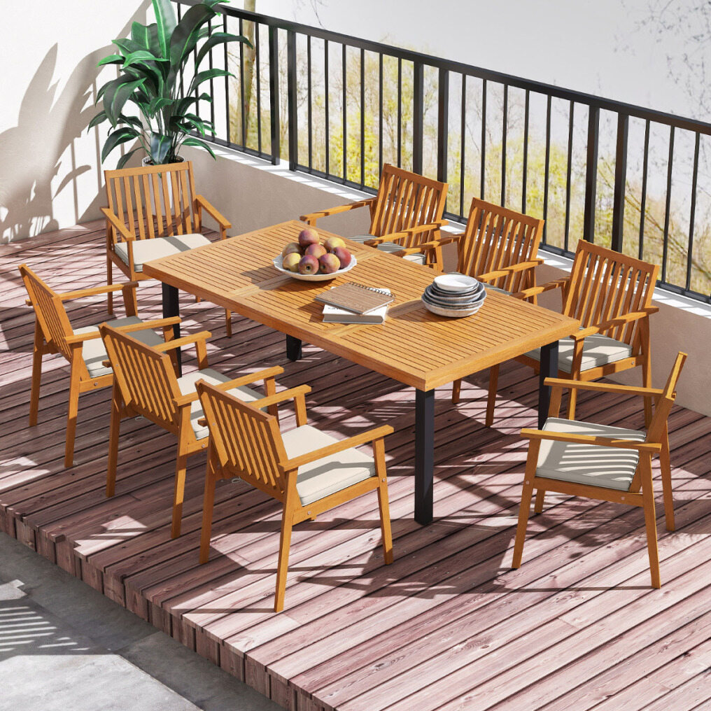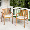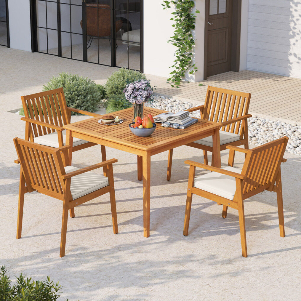 【Natural Acacia Wood Structure】Each outdoor dining chair is made of sturdy acacia wood, known for its strength and resistance to warping, supporting up to 180 kg. Regularly treating the wood with polishing oil (not included) is recommended to ensure its longevity.