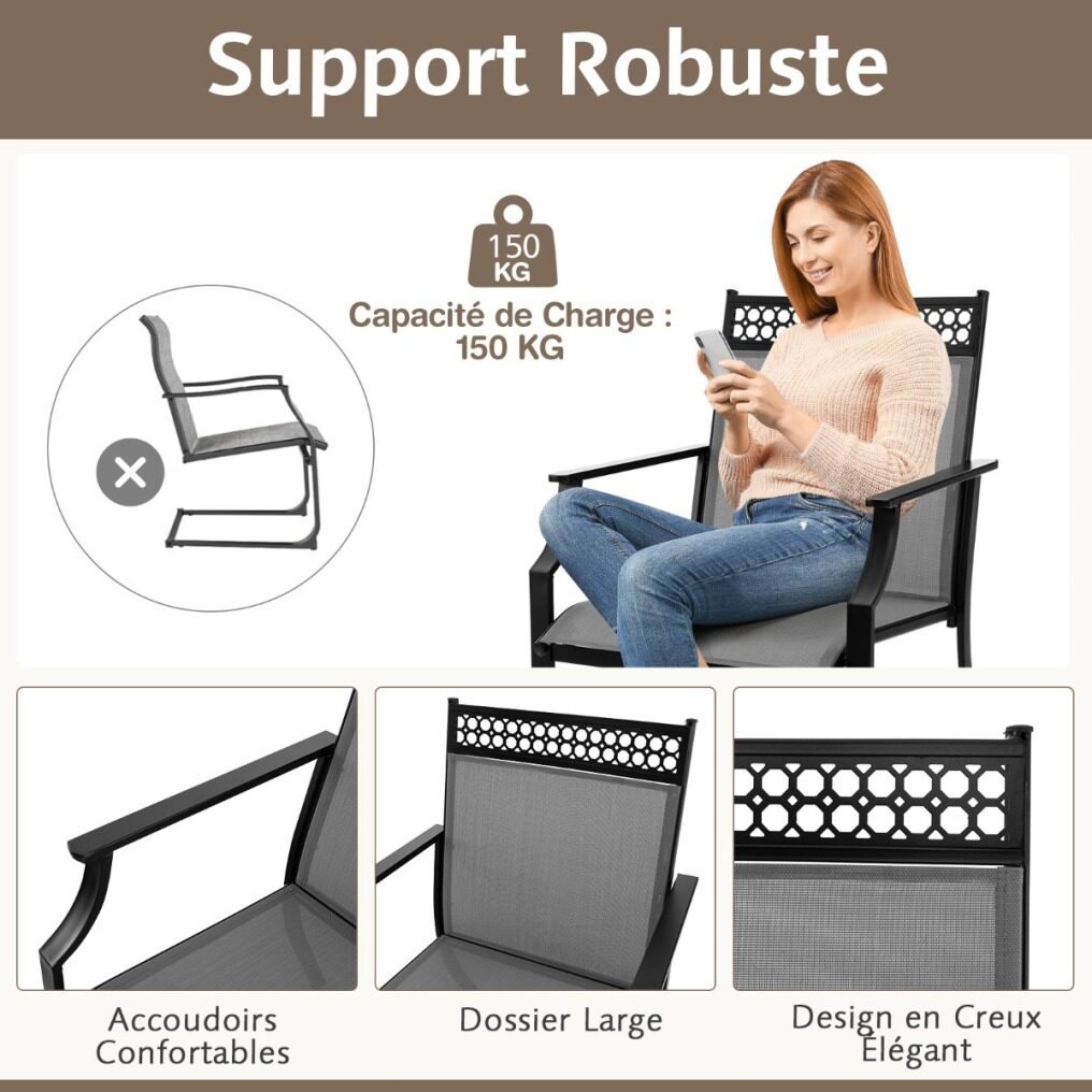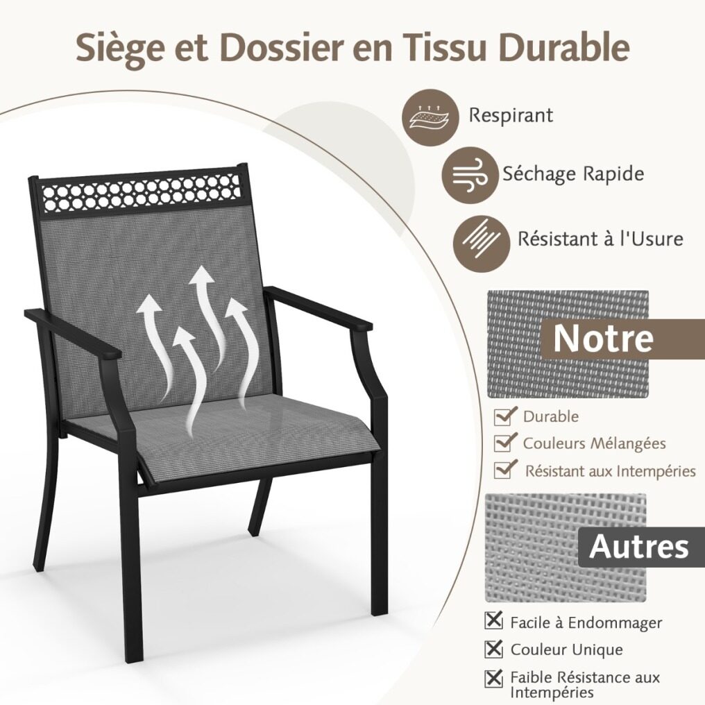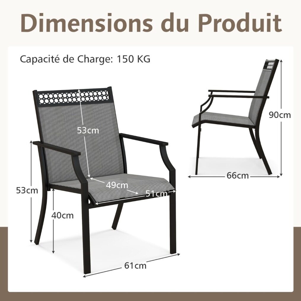 Selected Materials: Made from quick-drying fabric with exceptional durability and breathability, these patio chairs are built to last. The sturdy metal frame ensures that each chair can hold up to 150kg.