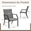 These patio chairs are made of carefully selected fabric material that ensures breathability, quick drying and resistance to wear and tear. Supported by a sturdy and rust-proof metal frame, each chair can hold up to 150kg. The widened and recessed seat as well as the comfortable backrest and armrests are designed for optimal comfort. The hollow patterns give the chairs an elegant touch and design flair. Suitable for various outdoor environments such as garden, patio, pool area and more. The straightforward assembly process makes it easy for you to set up the patio chairs.