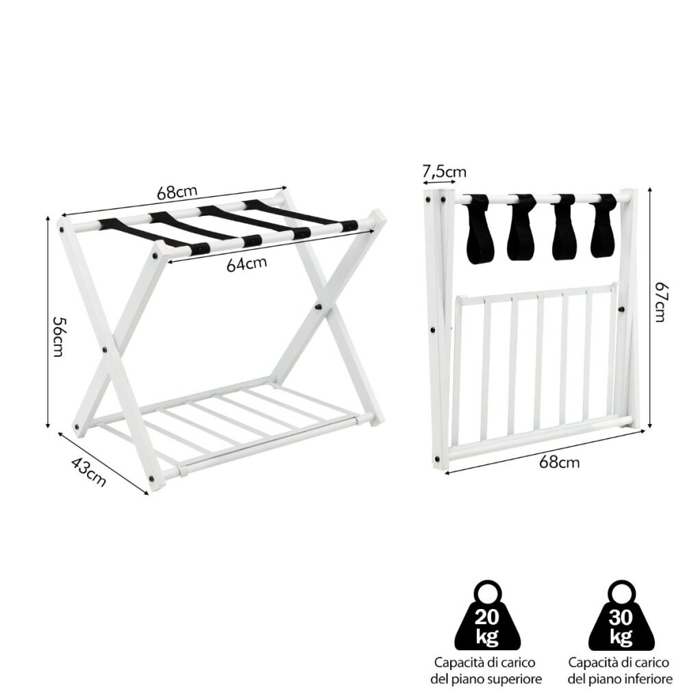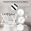 The lower shelf consists of 7 solid iron tubes on which you can store your shoes, bags or shoes. The luggage rack meets your storage requirements with a load capacity of up to 60kg. The foldable design allows you to lean the luggage rack against the wall to save space or store it in the closet. Use the luggage rack as a shelf in the bedroom, guest room, hotel room, and to store your luggage neatly and comfortably.
