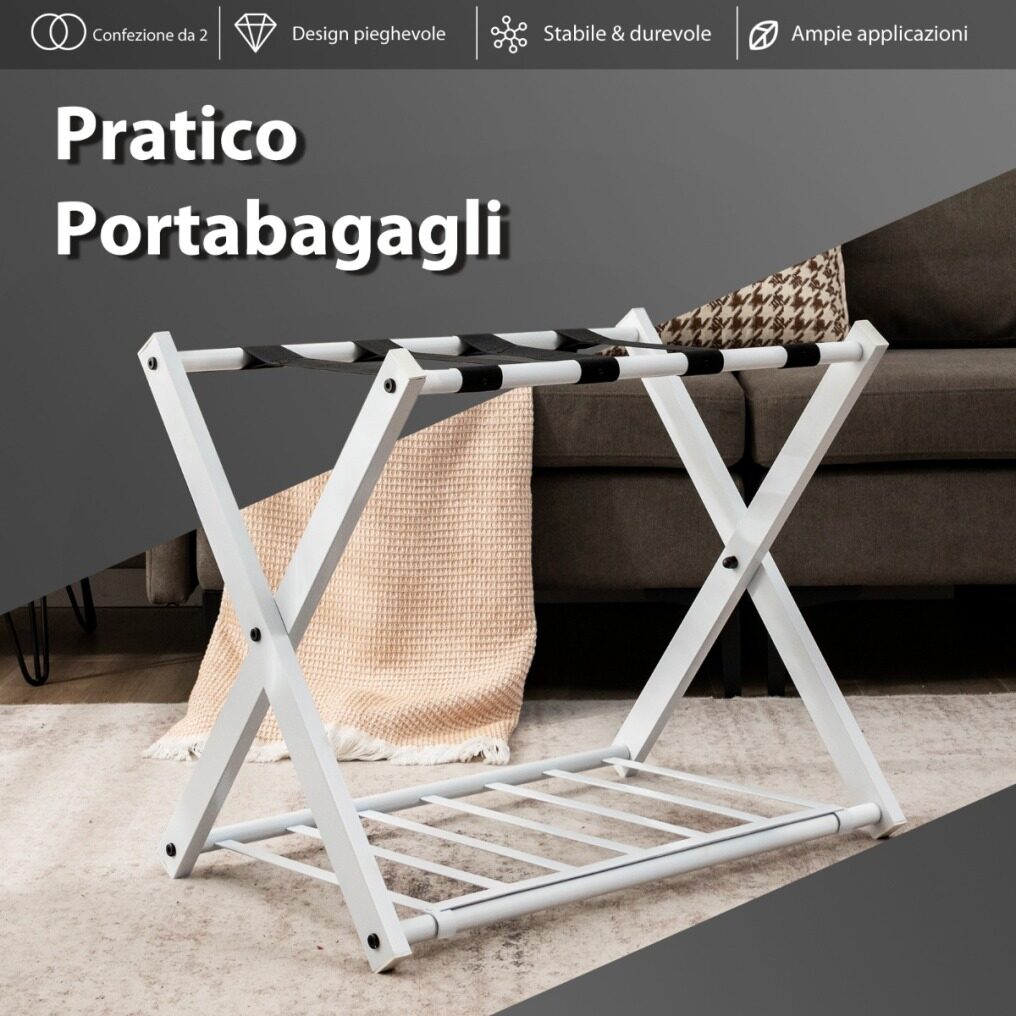 Multi-purpose storage area: The luggage rack consists of two storage areas. The upper one is characterized by the 4 robust, stable straps that can be loaded with medium-sized suitcases or bulky items. In addition, there are 7 iron tubes on the bottom that are ideal for storing smaller items such as shoes and bags.