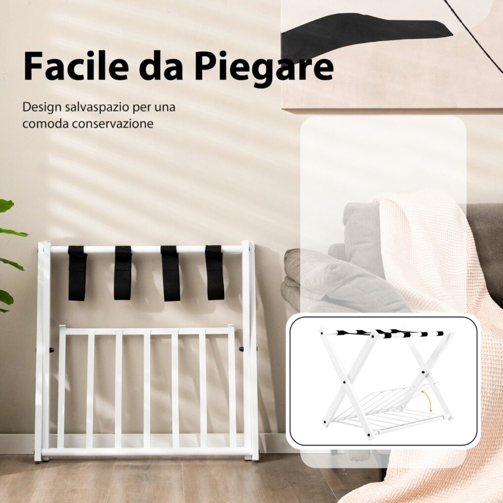 Foldable & compact: Thanks to the foldable structure, the luggage rack can be easily stowed away in a few seconds and can be easily stored in a closet or leaned against a wall. Even repeated and frequent folding is no problem.