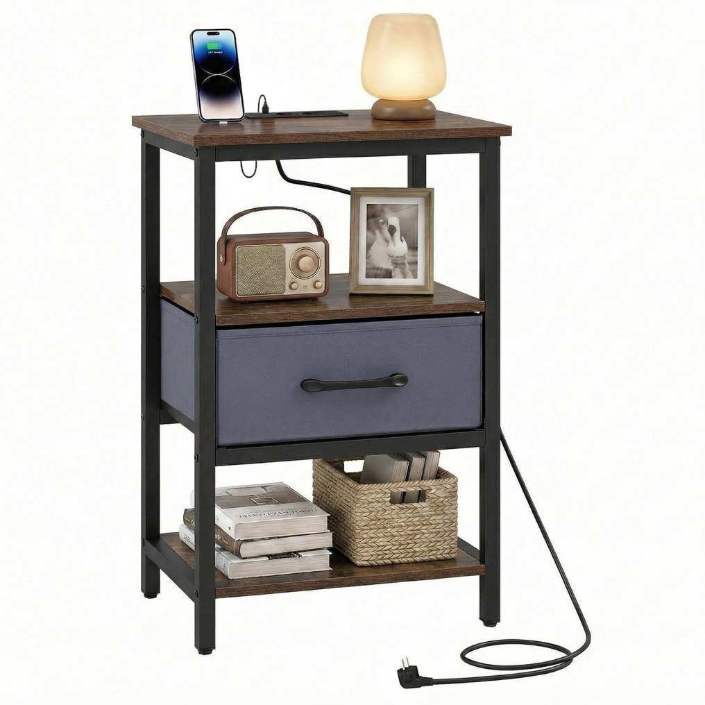 Easy charging: Equipped with two power outlets, one USB port, and one Type-C port, this bedside table keeps various devices charged and within easy reach. The convenient charging station reduces cable clutter and increases comfort at bedtime.