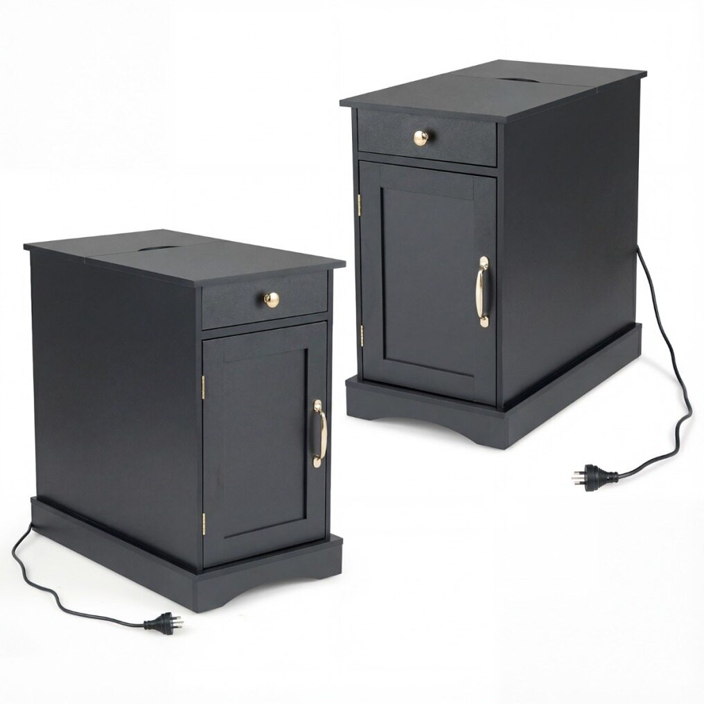Set of 2 bedside tables with charging station, side table with adjustable shelf, wooden nightstand, black Sourcing Wholesale Supplier/Distributor | B2B Marketplace