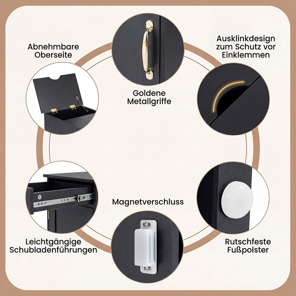 Robust and durable materials : This nightstand features a stable and sturdy construction for a long lifespan. Non-slip pads on the bottom increase stability and protect the floor from scratches.