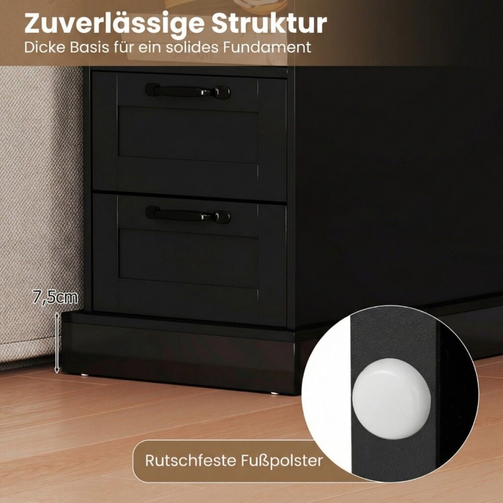 Sturdy construction: Made for long-lasting use, the nightstand features a solid structure with a 7.5 cm thick base, metal corner protectors for added strength, and non-slip feet to ensure stability and protect your floor.