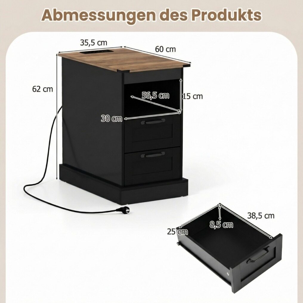 Set of 2 bedside tables with charging station, narrow side table with storage compartment & 2 drawers, black Sourcing Wholesale Supplier/Distributor | B2B Marketplace