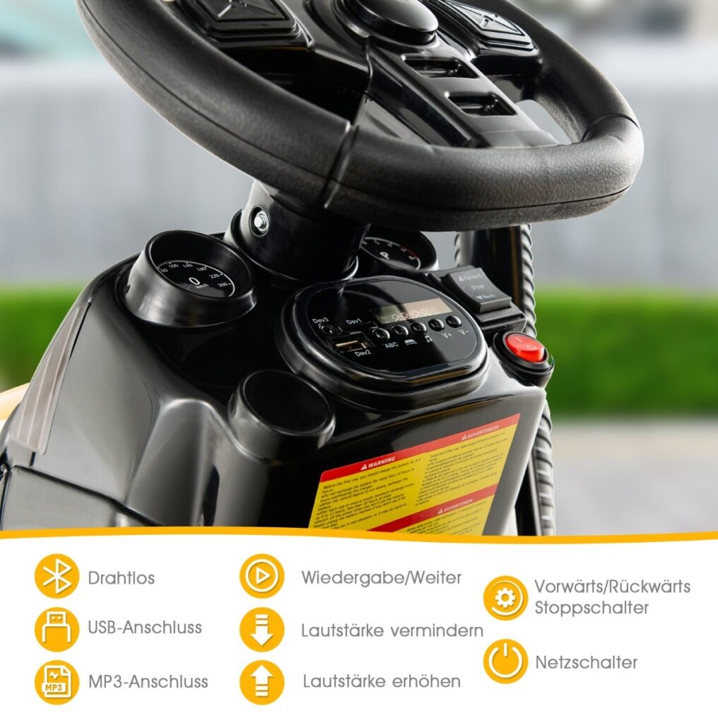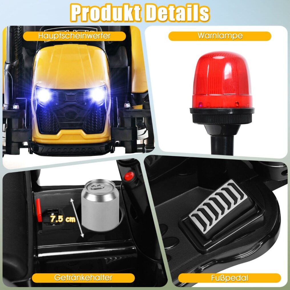 Our toy tractor with trailer is the perfect gift for children. It is made of high-quality material and promotes children's coordination. It can also be used on a variety of surfaces. The music player, horn and MP3 player provide musical accompaniment while driving. To ensure the safety of children, the vehicle is equipped with a 2-point safety belt and a remote control for parents. Thanks to the detailed instructions, the vehicle can be assembled quickly.