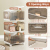 The foldable shoe box is constructed with sturdy materials, ensuring its longevity and functionality. The storage bins with lids are ideal for keeping your shoes or other items neatly organized. With a transparent design, the flip doors not only allow for easy identification of shoes but also add a stylish touch to your space. Featuring lockable universal wheels, this portable shoe rack provides convenient mobility and enhanced stability. Installation is easy with its interlocking design. When not in use, the large sneaker cabinet can be folded into a compact size to save space.