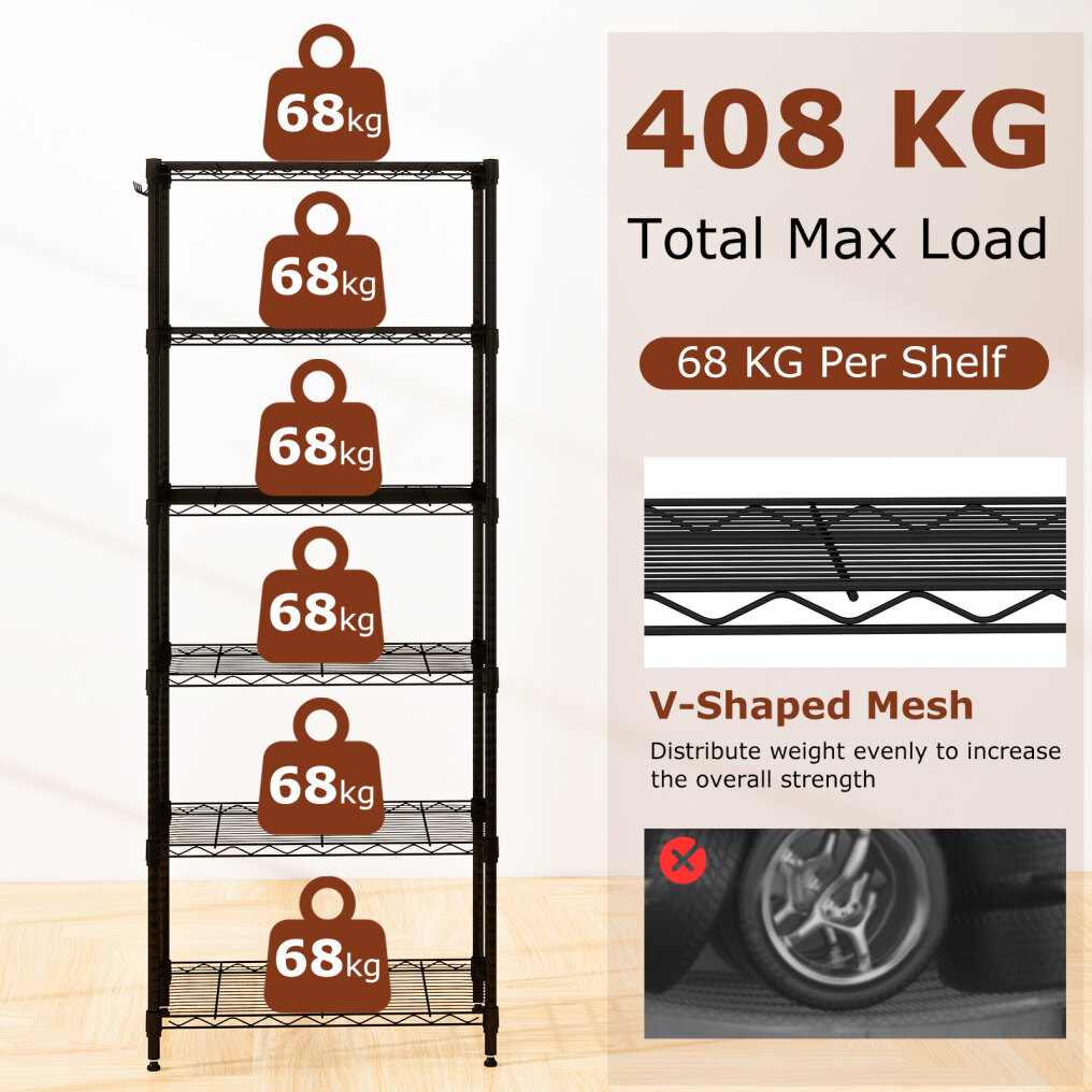 【Metal Sturdy Construction】Constructed with a robust metal frame and V-shaped mesh grids, this storage shelf evenly distributes weight for increased overall strength. It supports up to 272 kg in total, ensuring reliable and sturdy storage for all your organizational needs.