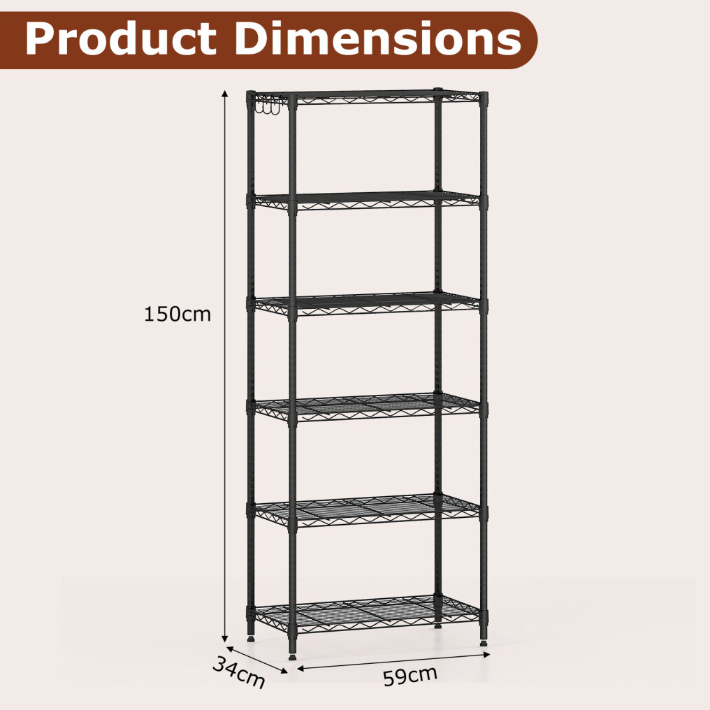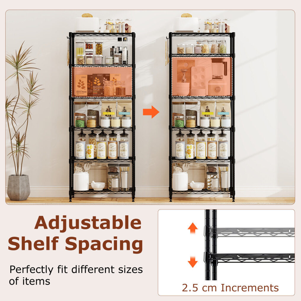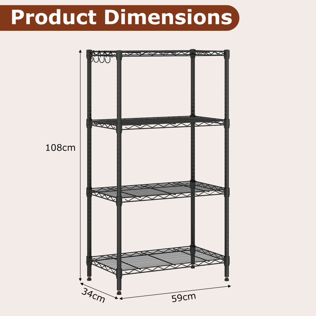 【Versatile Adjustable Shelves】Featuring 4 storage tiers with adjustable spacing in 2.5 cm increments, this utility shelf easily accommodates items of various sizes. You can customize each shelf for perfect organization. Additionally, 4 extra hooks are included for extra storage space.