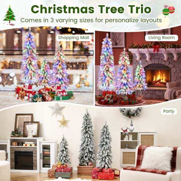 This set includes 597 flocked branch tips, creating a lush, snow-kissed appearance that captures winter’s charm. Moreover, the Xmas tree set features 300 colorful LED lights that are safe, energy-saving, and enduring. Crafted from 100% new PVC, these trees are fireproof, anti-fading, anti-deformation, non-allergic, and smell-free. Premium details for ensured stability include sturdy trunks and secure metal stands that keep the trees upright all season. Plus, included protective gloves make assembly and fluffing effortless. Merry Christmas!