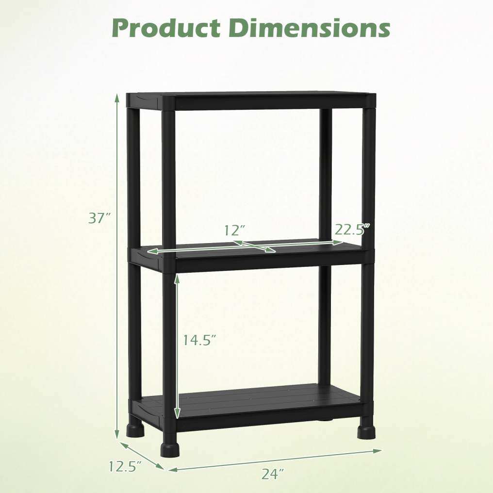 ● Long-Lasting Material: Made from high-quality PP material, this plastic shelving unit is waterproof, fade-resistant and rust-free, ensuring long-lasting performance. Moreover, the anti-slip surface allows for the secure placement of items.