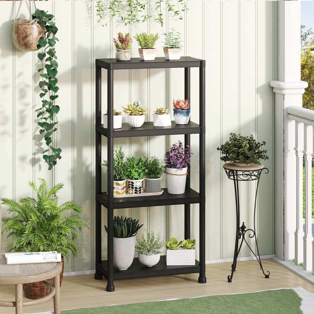 ● Long-Lasting Material: Made from high-quality PP material, this plastic shelving unit is waterproof, fade-resistant and rust-free, ensuring long-lasting performance. Moreover, the anti-slip surface allows for the secure placement of items.