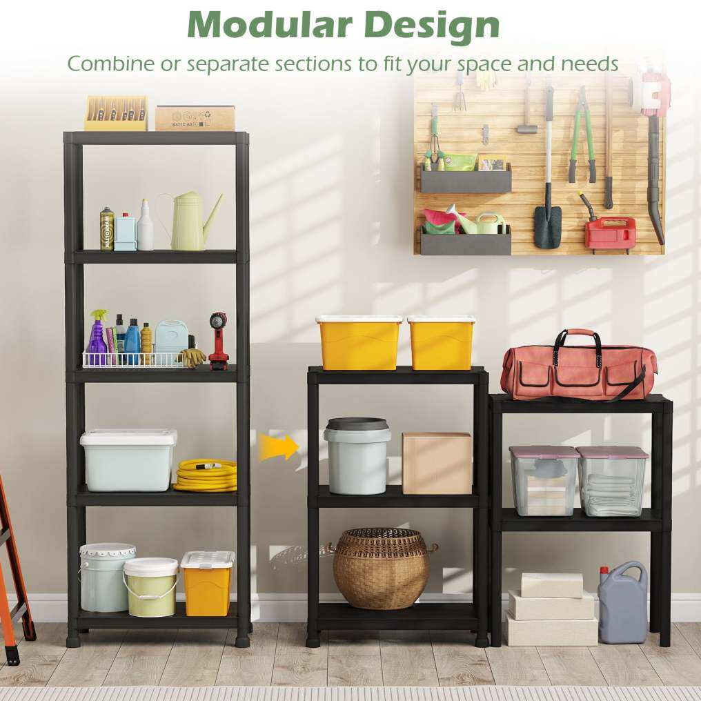 ● Ample Storage Capacity: This 3/4/5-tier open garage shelf organizer features 14.5" clearance per shelf, providing ample space for organizing various items. Plus, its vertical design effectively saves your floor space.