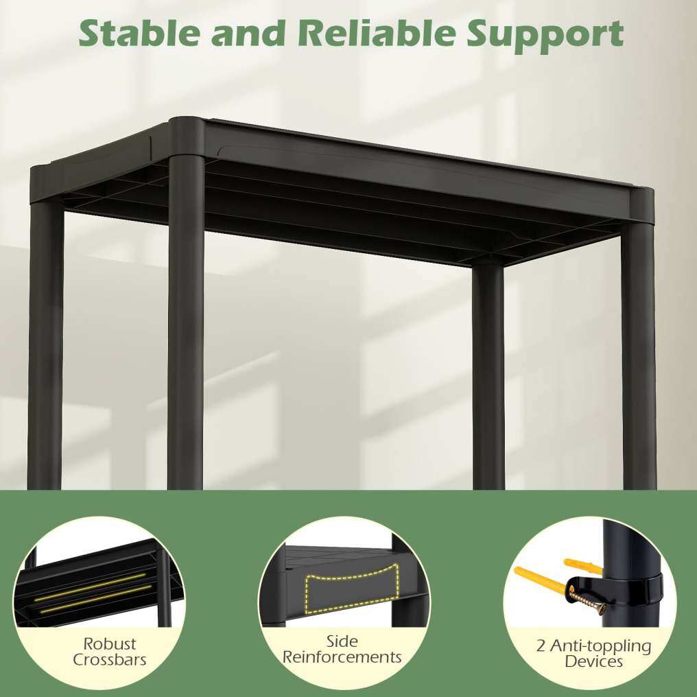 ● Long-Lasting Material: Made from high-quality PP material, this plastic shelving unit is waterproof, fade-resistant and rust-free, ensuring long-lasting performance. Moreover, the anti-slip surface allows for the secure placement of items.