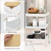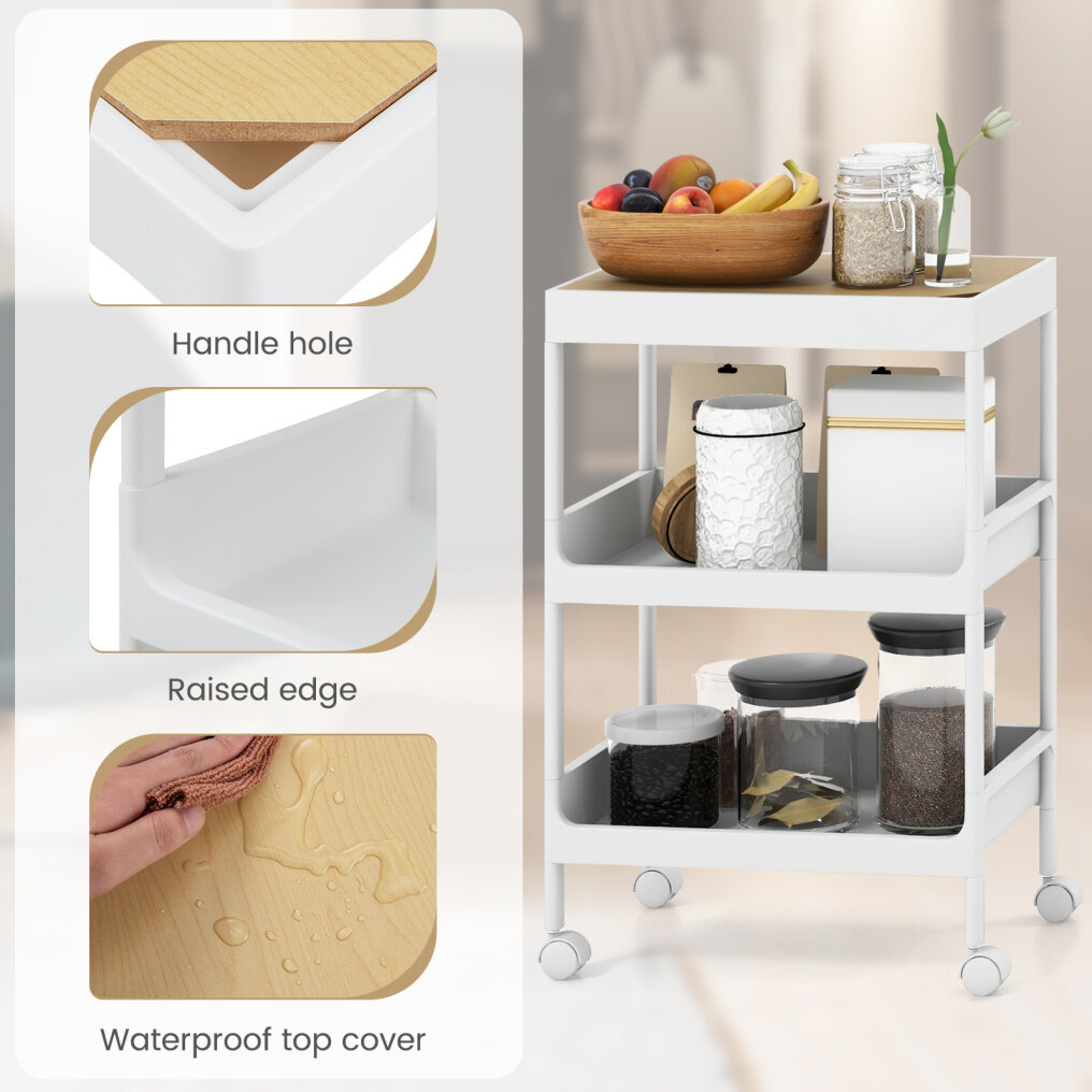 ● Easy Movement and Stable Structure: This rolling cart is designed with a white metal frame that is both robust and lightweight, and comes with four 360°rotation wheels, which make it easy to move the cart as required. The two lockable wheels provide added stability when you need to keep the cart in one place.