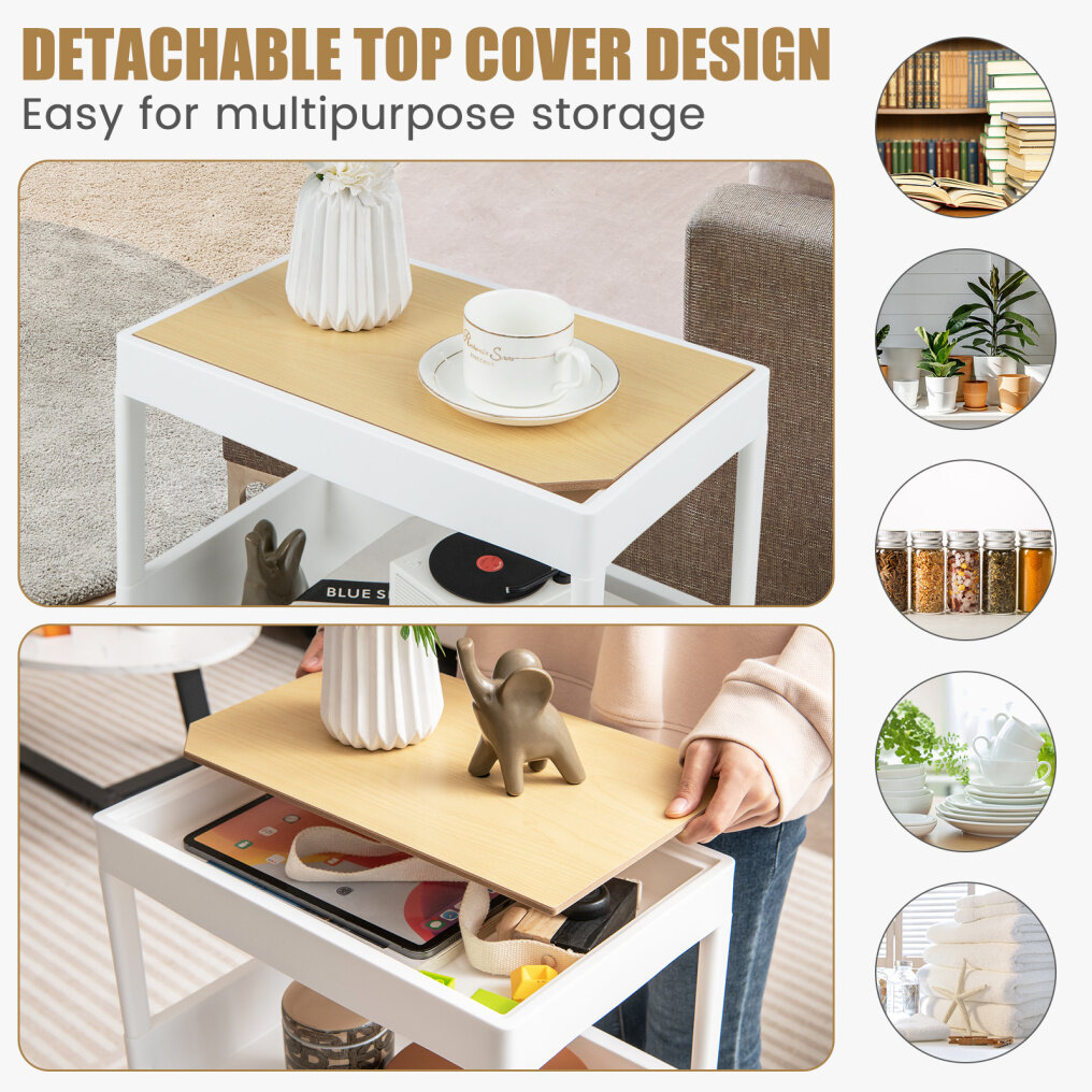 ● Detachable Top Cover Design: Vary from other rolling carts, this storage cart comes with a removable top cover allowing you to place a laptop, magazines, books or cups for extra needs. Besides, a hidden space under the top cover keeps your items away from dust.