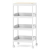 ● Easy Movement and Stable Structure: This rolling cart is designed with a white metal frame that is both robust and lightweight, and comes with four 360°rotation wheels, which make it easy to move the cart as required. The two lockable wheels provide added stability when you need to keep the cart in one place.