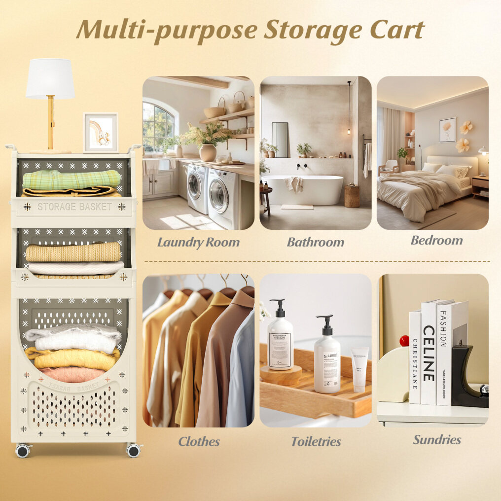 ● Thoughtful Details: Each basket in this rolling storage rack features a raised anti-drop baffle, so your essentials stay in place while in transit. The large openings allow easy access to your laundry, while the ventilated design keeps air circulating to prevent humidity from building up.