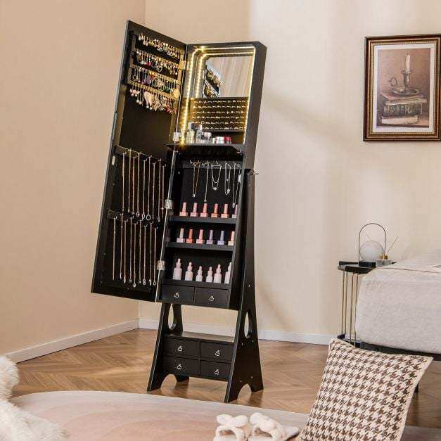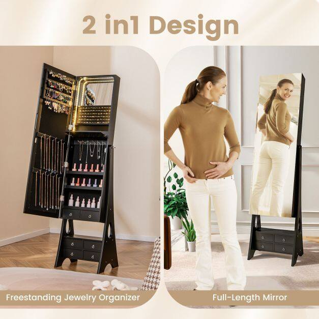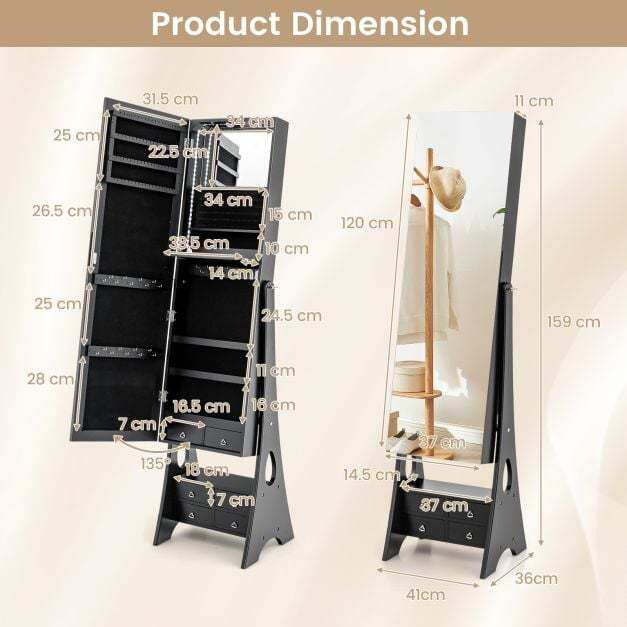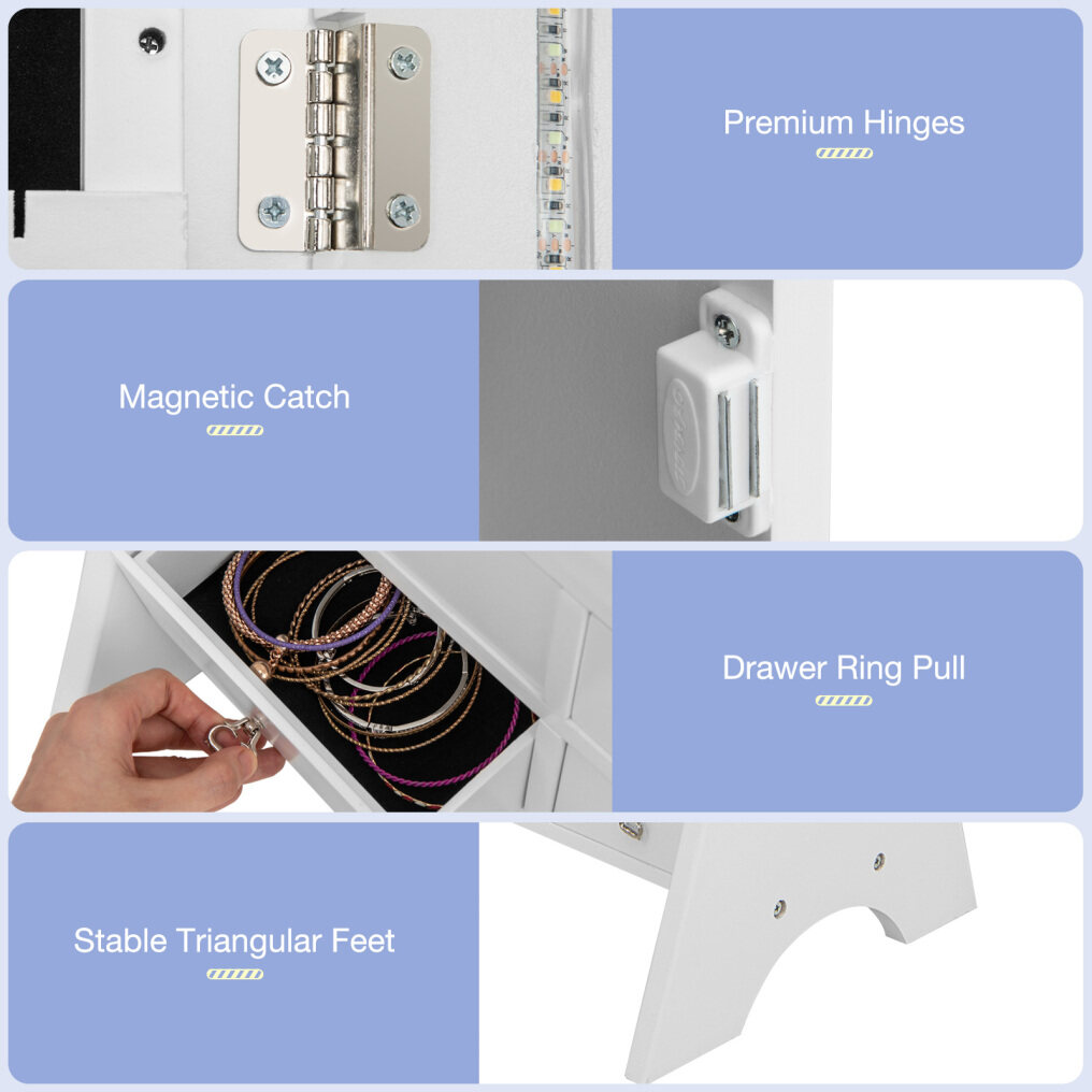 Easy Assembly and Elegant Charm: With the easy-to-understand instruction, you can install the jewelry cabinet in a short time. Additionally, the jewelry cabinet with full-length mirror will bring both convenience and style to any bedroom, powder room, or cloakroom.