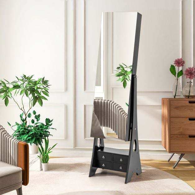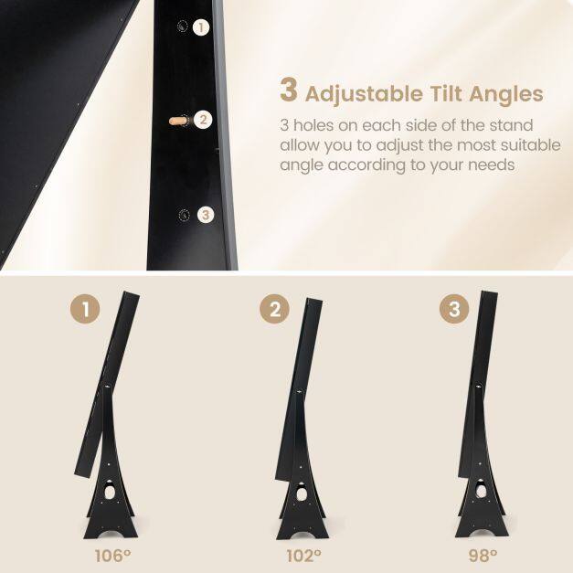Full-length Mirror and 3 Tilt Angles: The jewelry armoire features a frameless and clear full-length mirror for you to see yourself from head to toe. In addition, 3 adjustable tilt angles (106°/102°/98°) allow you to choose the most suitable angle to get a better view.