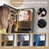 Adjustable Lights and Built-in Mirror: The built-in makeup mirror and 3-color LED light strip make it convenient for you to choose jewelry or apply makeup even in the dark. You can press the light switch to change the light color from yellow light to white light or blue light. The light is powered by 3 x AA 1.5V batteries (not included). Plus, the foldable shelf holds your cosmetics or brushes.
