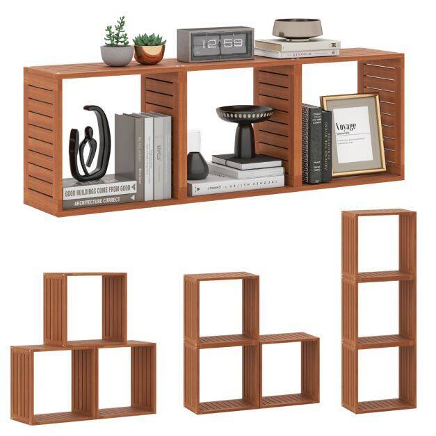 ● Robust Wood Framework: Each of the 3 cube bookcases is crafted from selected solid wood, which is anti-crack and high-hardness, ensuring durability for both indoor and outdoor use. Note: Please care the wood with maintenance oil regularly for longer service life.